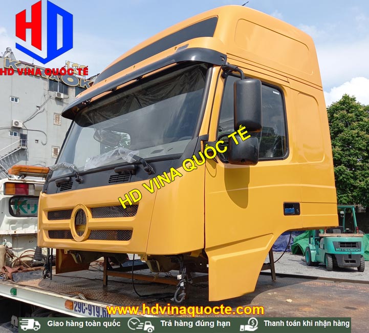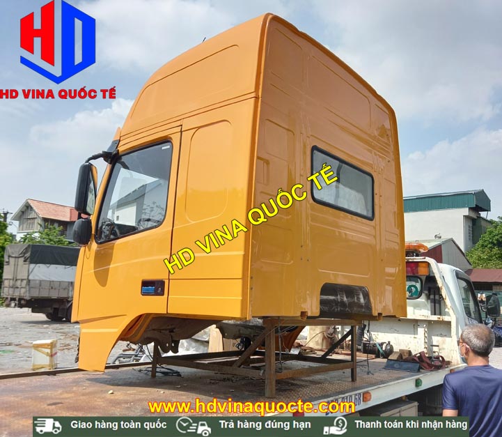Cabin tổng thành có đầy đủ toàn bộ nội thất, ngoại thất. Ví dụ như: Cản, badsoc, đèn, bậc lên xuống, cột hút gió sau lưng cabin, vô lăng, cần số, quả đấm số, điều hòa, ghế, giường nằm, đài radio....