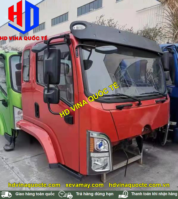 - Cabin tổng thành có đầy đủ toàn bộ nội thất, ngoại thất. Ví dụ như: Cản, badsoc, đèn, bậc lên xuống, cột hút gió sau lưng cabin, vô lăng, cần số, quả đấm số, điều hòa, ghế, giường nằm, gương, ốp cua vè....