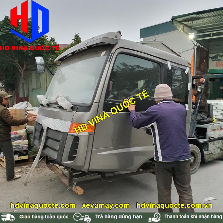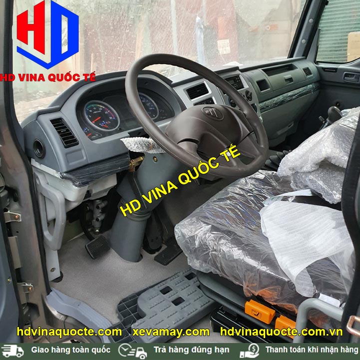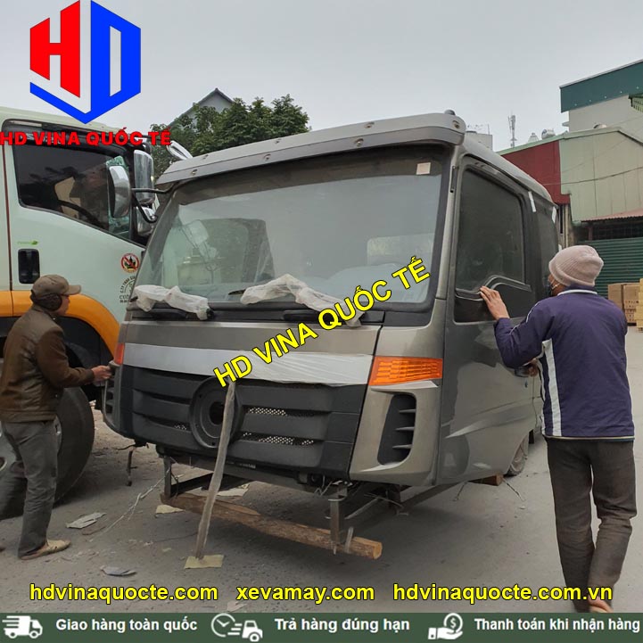 - Cabin có đủ nội thất, ngoại thất: Cản, badsoc, đèn, điều hòa, vô lăng, cần số, quả đấm số, bậc lên xuống, ghế, chân ga, chân côn, chân phanh,...