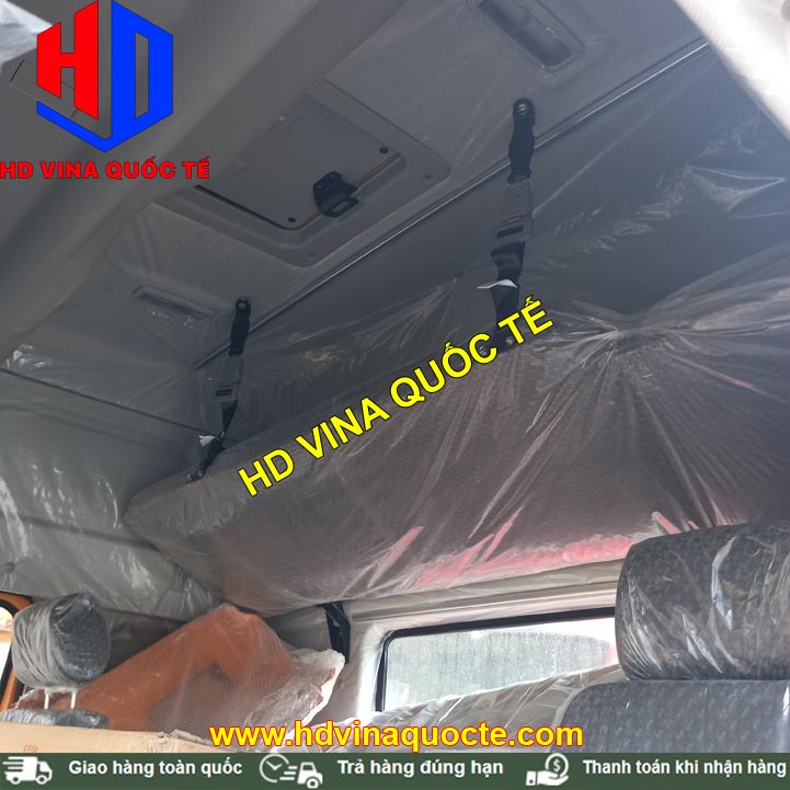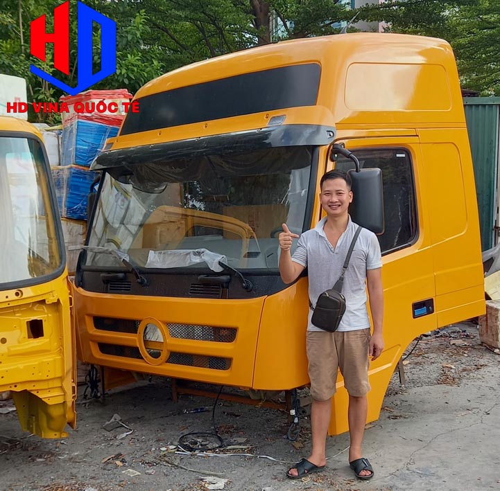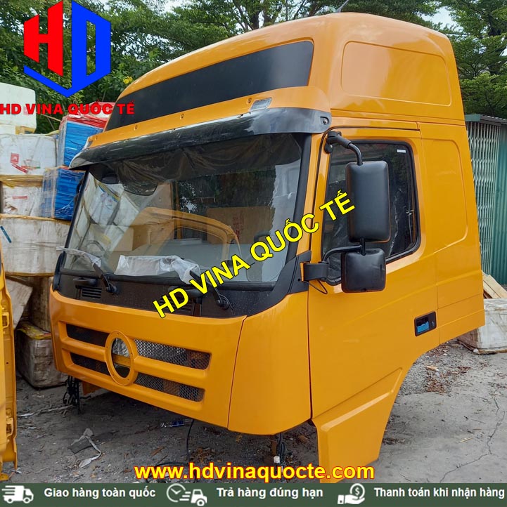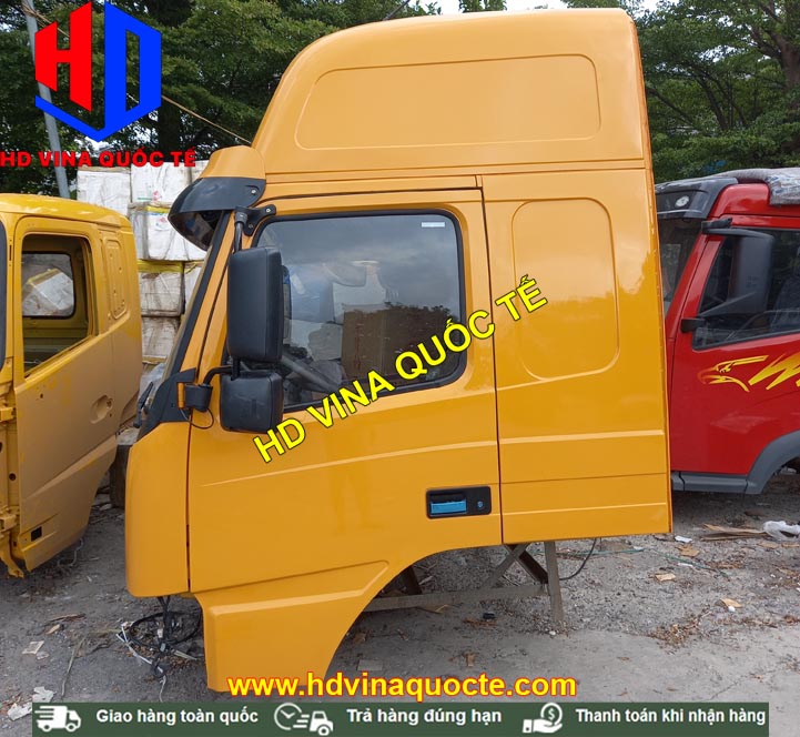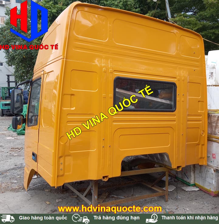 Cabin tổng thành có đầy đủ toàn bộ nội thất, ngoại thất. Ví dụ như: Cản, badsoc, đèn, bậc lên xuống, cột hút gió sau lưng cabin, vô lăng, cần số, quả đấm số, điều hòa, ghế, giường nằm, đài radio....