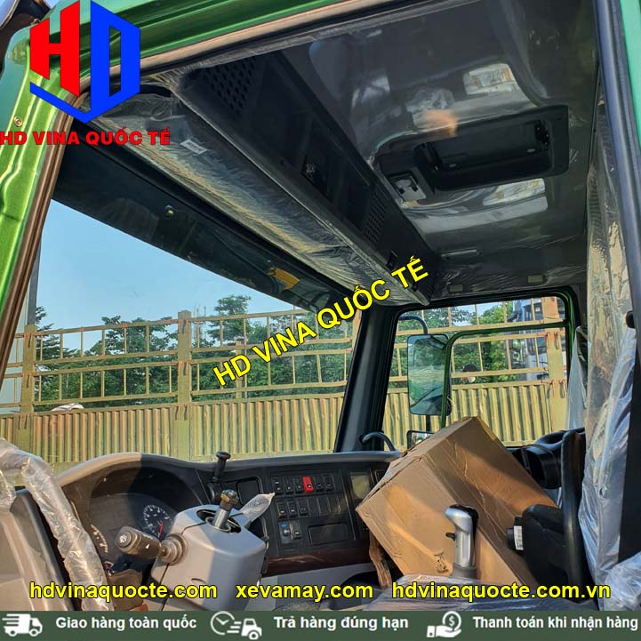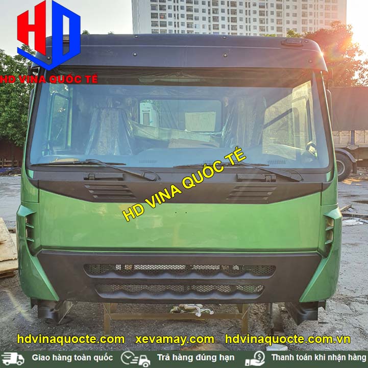 - Cabin tổng thành có đầy đủ toàn bộ nội thất, ngoại thất. Ví dụ như: Cản, badsoc, đèn, bậc lên xuống, cột hút gió sau lưng cabin, vô lăng, cần số, quả đấm số, điều hòa, ghế, giường nằm, gương, ốp cua vè, chân ga, chân côn, chân phanh....