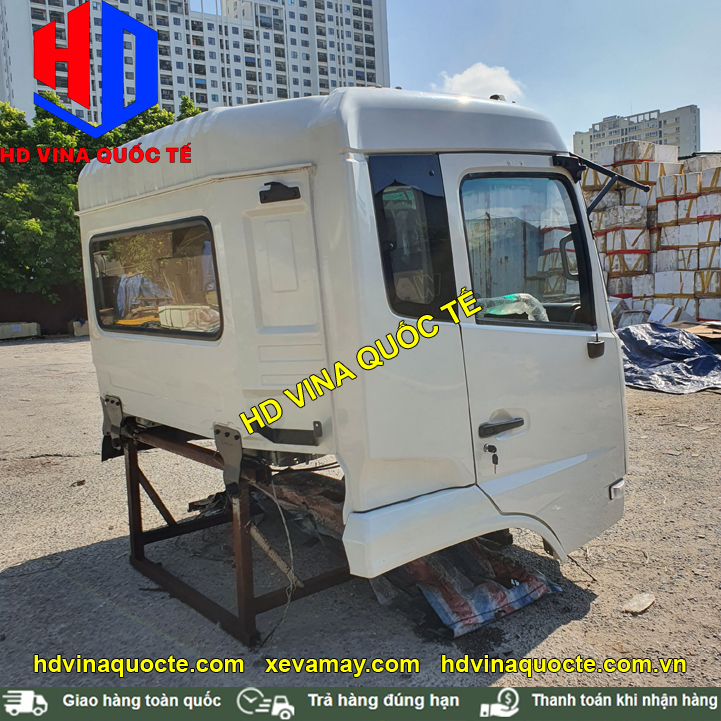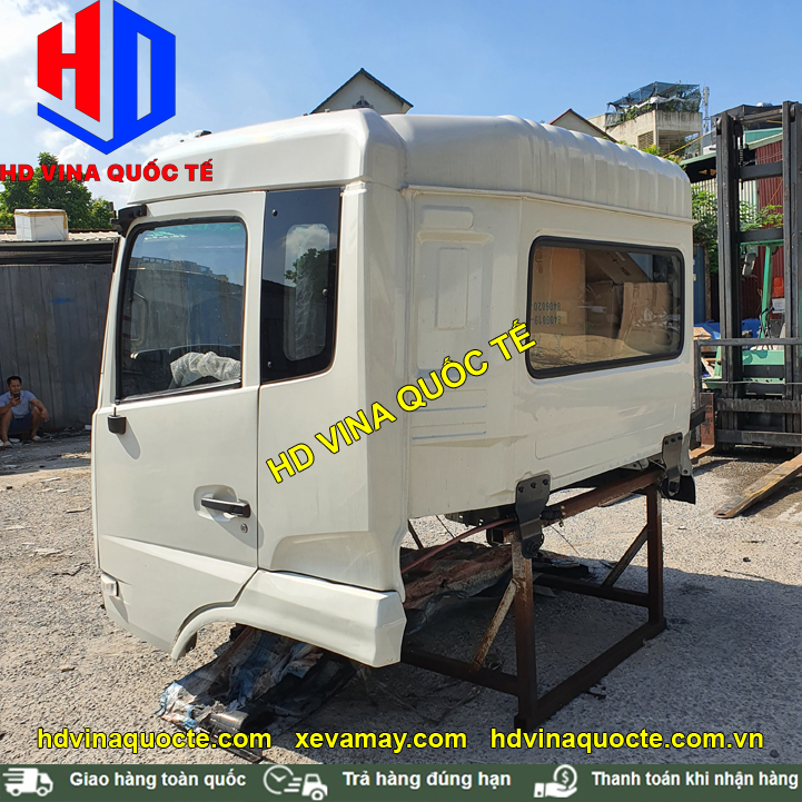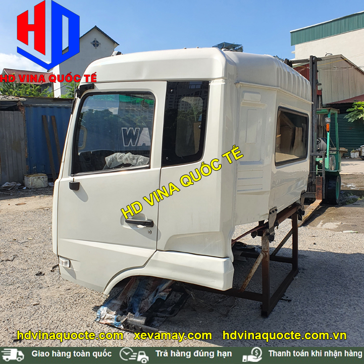 Cabin tổng thành có đầy đủ badsoc, đèn, gương, bậc lên xuống, cột hút gió, vô lăng, cần số, điều hòa, mặt nạ galang, ghế, giường nằm, logo biểu tượng,...