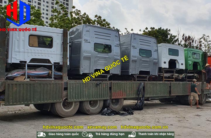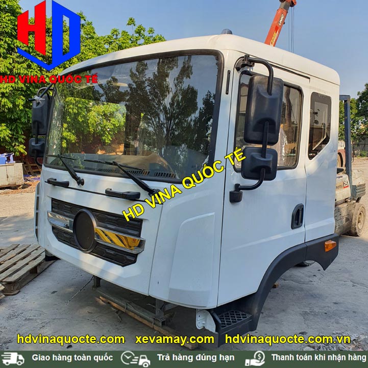 - Cabin tổng thành có đầy đủ toàn bộ nội thất, ngoại thất. Ví dụ như: Cản, badsoc, đèn, bậc lên xuống, cột hút gió sau lưng cabin, vô lăng, cần số, quả đấm số, điều hòa, ghế, giường nằm, đài radio....