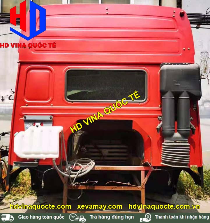 - Cabin tổng thành có đầy đủ toàn bộ nội thất, ngoại thất. Ví dụ như: Cản, badsoc, đèn pha, đèn gầm, bậc lên xuống, cột hút gió sau lưng cabin, vô lăng, cần số, quả đấm số, điều hòa, ghế, giường nằm, gương, ốp cua vè....